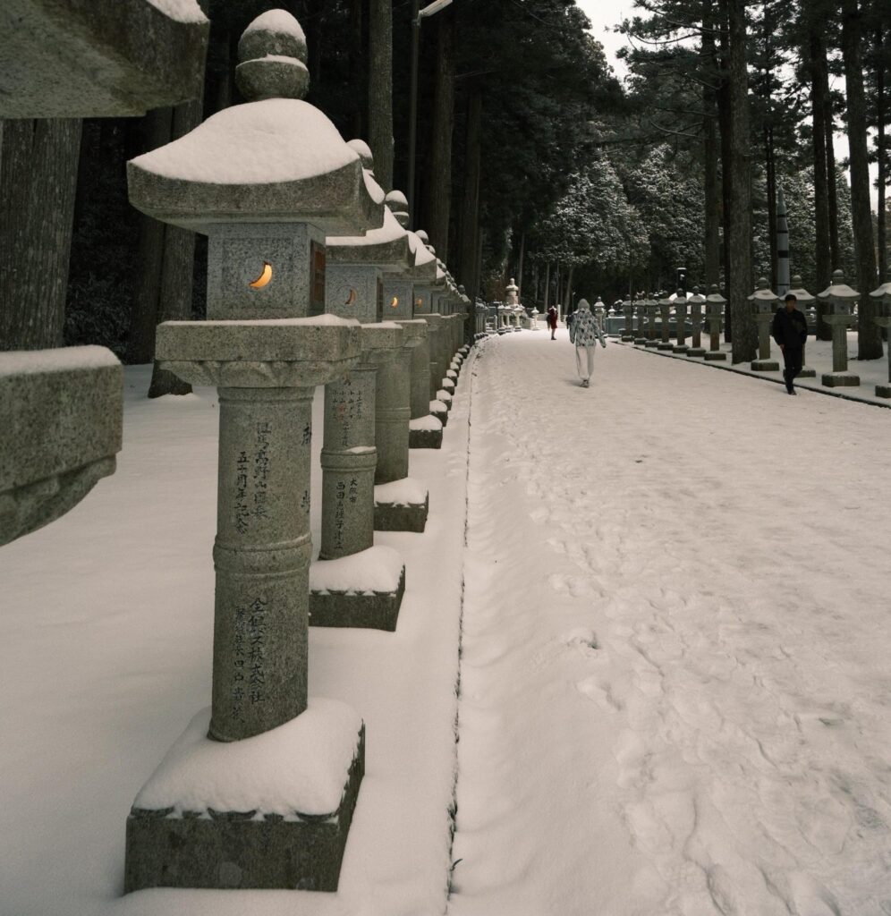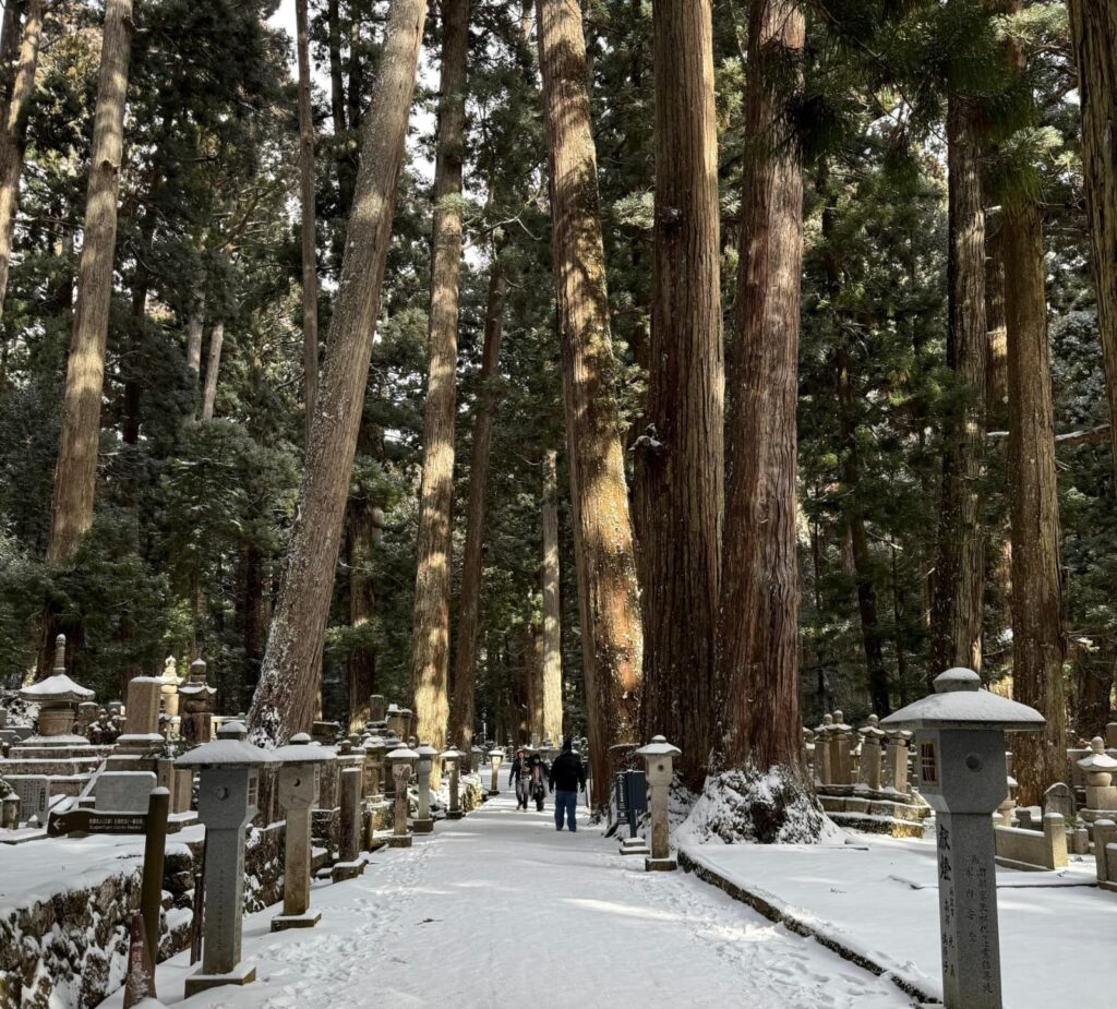 Then came Koyasan—easily one of the most memorable days of my travels ever. The tram ride up the mountain felt magical, slowly pulling us away from the city. Then the snow started—a full blizzard, and my first time seeing snow fall. Wandering through Okunoin cemetery with its tall trees and headstones covered in pristine white, while sunlight filtered through the branches, felt sacred. Warm hot chocolate, kind villagers, and a quiet that will stay with me forever.