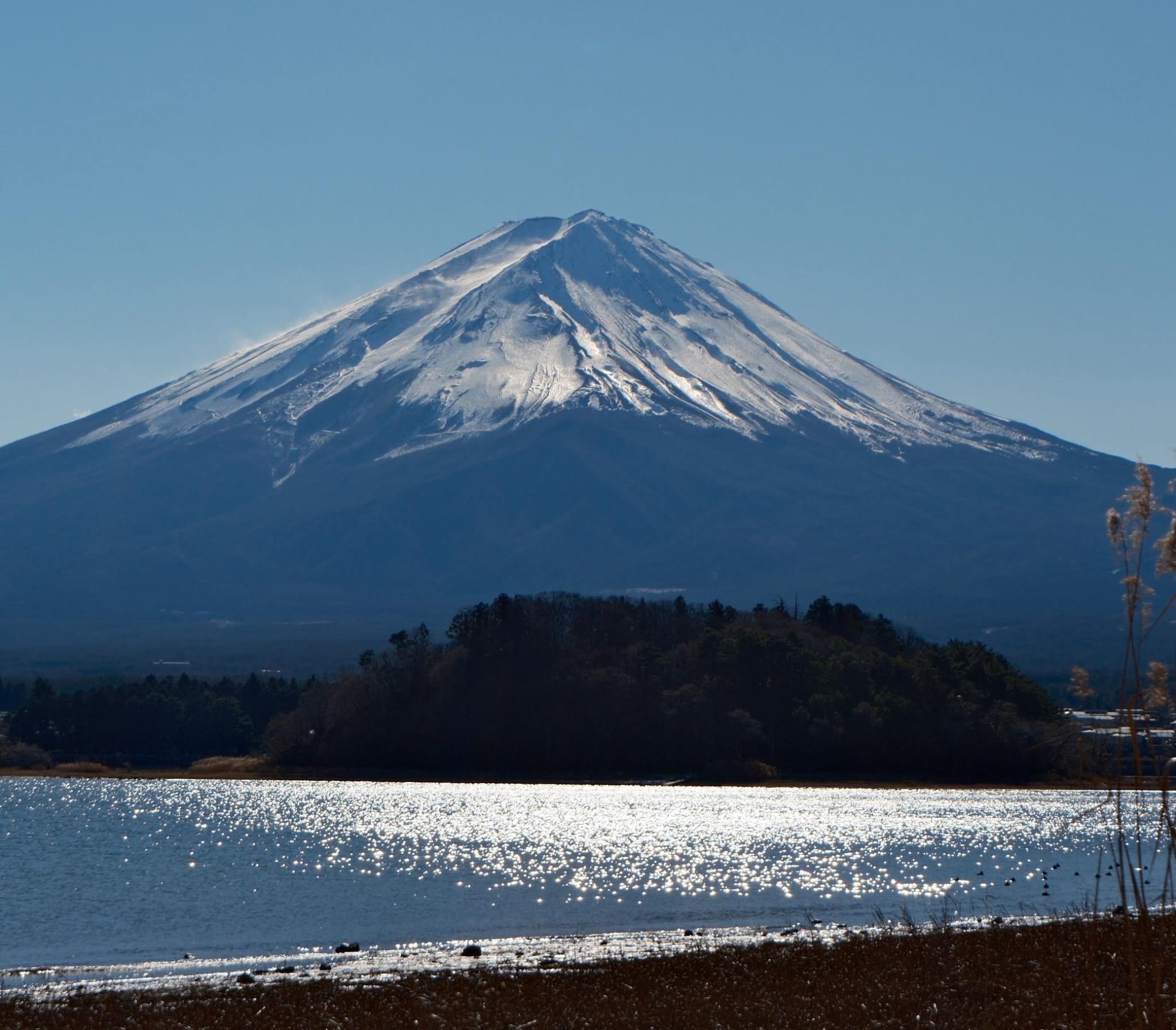 ❄️ The Silhouette: The image of Fuji standing tall against a winter sky.