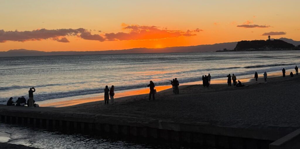 🌅 The Seaside Dash: Hopping off the Enoden and rushing to the shore just in time for the Kamakura sunset.